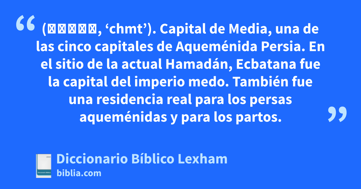 Acmeta (אחמתא, ‘chmt’). Capital de Media, una de las cinco capitales de Aqueménida Persia. En el sitio de la actual Hamadán, Ecbatana fue la capital del imperio medo. También fue una residencia real para los persas aqueménidas y para los partos.