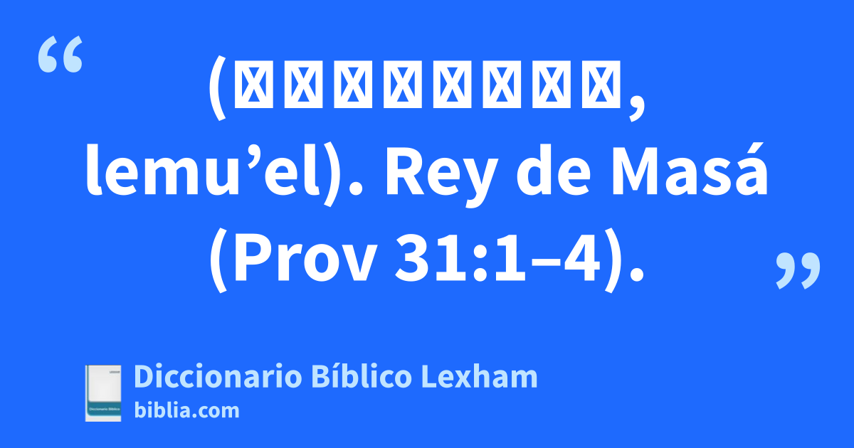 Lemuel (לְמוּאֵל, lemu’el). Rey de Masá (Prov 31:1–4).
