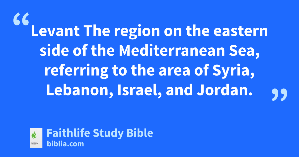 Levant The region on the eastern side of the Mediterranean Sea, referring to the area of Syria, Lebanon, Israel, and Jordan.