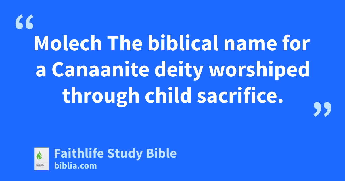 Molech The biblical name for a Canaanite deity worshiped through child sacrifice.