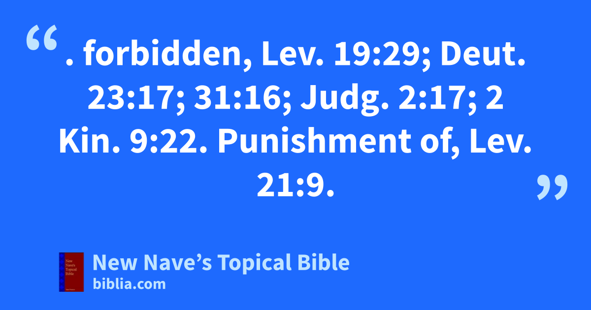 PROSTITUTION. forbidden, Lev. 19:29; Deut. 23:17; 31:16; Judg. 2:17; 2 Kin. 9:22. Punishment of, Lev. 21:9.