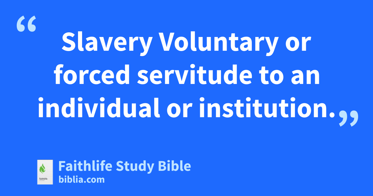 Slavery Voluntary or forced servitude to an individual or institution.