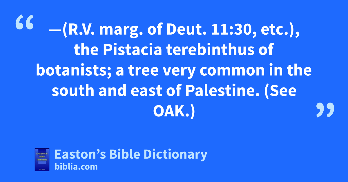 Terebinth—(R.V. marg. of Deut. 11:30, etc.), the Pistacia terebinthus of botanists; a tree very common in the south and east of Palestine. (See OAK.)