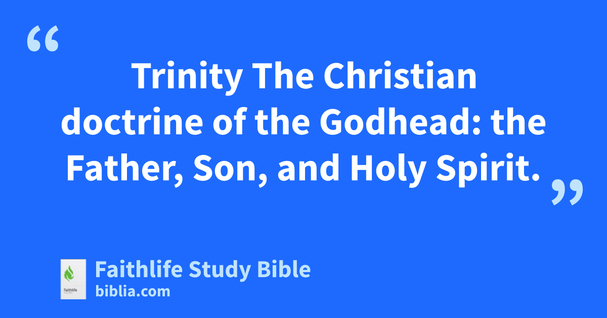 Trinity The Christian doctrine of the Godhead: the Father, Son, and Holy Spirit.