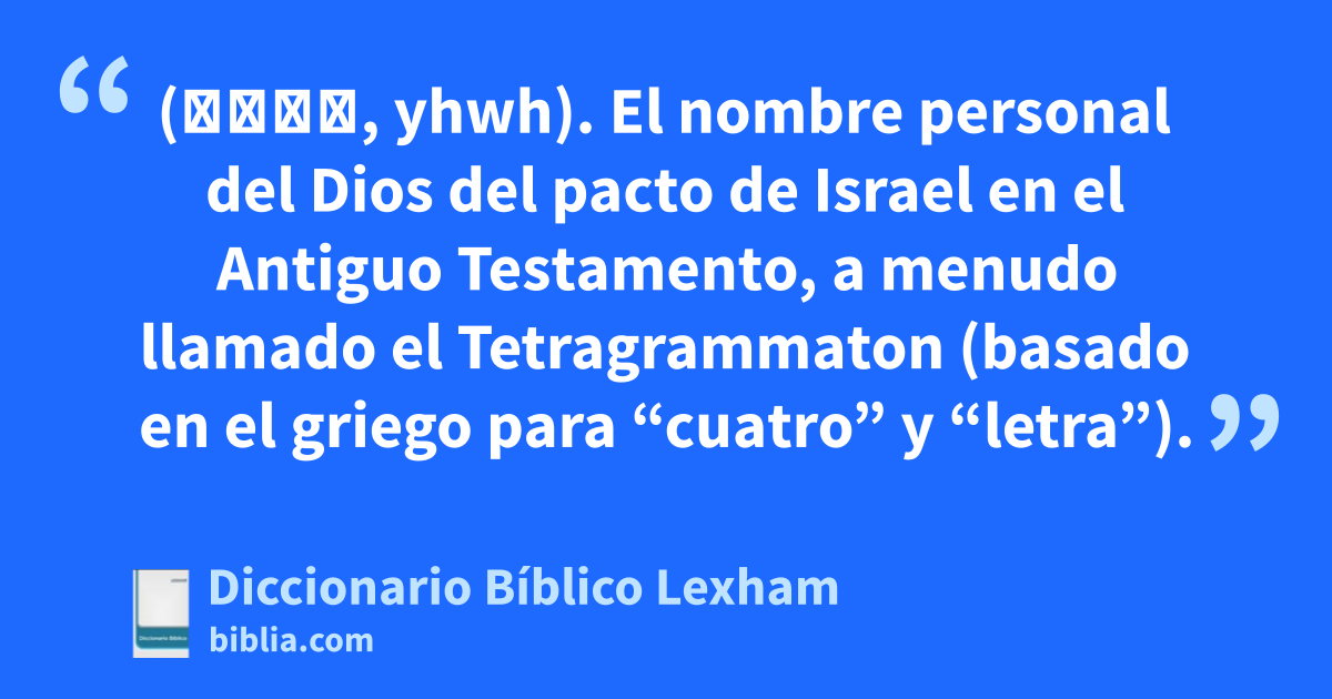 YHWH (יהוה, yhwh). El nombre personal del Dios del pacto de Israel en el Antiguo Testamento, a menudo llamado el Tetragrammaton (basado en el griego para “cuatro” y “letra”).