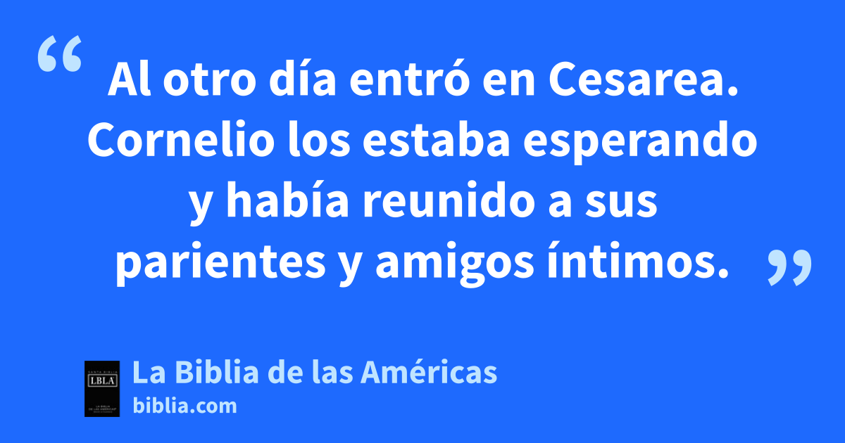 ¶24 Al otro día entró en Cesareaa. Cornelio los estaba esperando y había reunido a sus parientes y amigos íntimos.