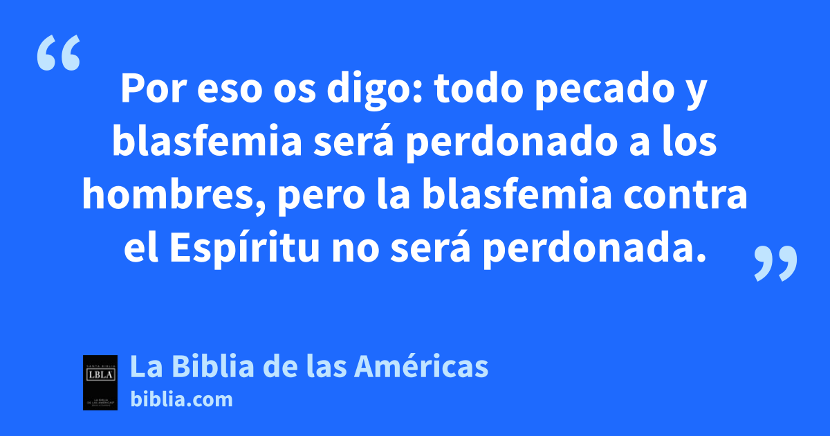 31 aPor eso os digo: todo pecado y blasfemia será perdonado a los hombres, pero la blasfemia contra el Espíritu no será perdonada.