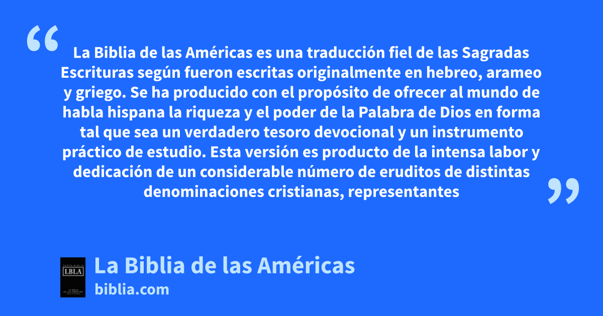 La Biblia de las Américas se ofrece en la seguridad de que los que buscan el mensaje y el conocimiento de las Sagradas Escrituras, hallarán aquí una traducción clara y fidedigna de la verdad revelada por Dios en su Palabra.