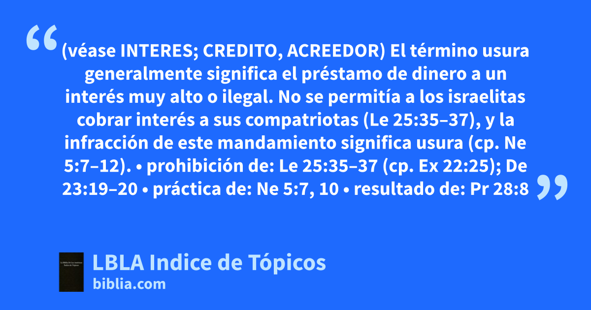 El término usura generalmente significa el préstamo de dinero a un interés muy alto o ilegal. No se permitía a los israelitas cobrar interés a sus compatriotas (Le 25:35–37), y la infracción de este mandamiento significa usura (cp. Ne 5:7–12).