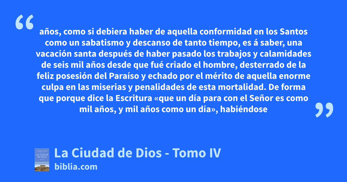 La ciudad de Dios (cuyo título latino original es De civitate Dei contra paganos, es decir La ciudad de Dios contra los paganos) es una obra en 22 libros de Agustín de Hipona que fue escrita durante su vejez y a lo largo de quince años, entre el 412 y el 426. Es una apología del cristianismo, en la que se confronta la Ciudad Celestial a la Ciudad Pagana. San Agustín trata temas de muy diversa...