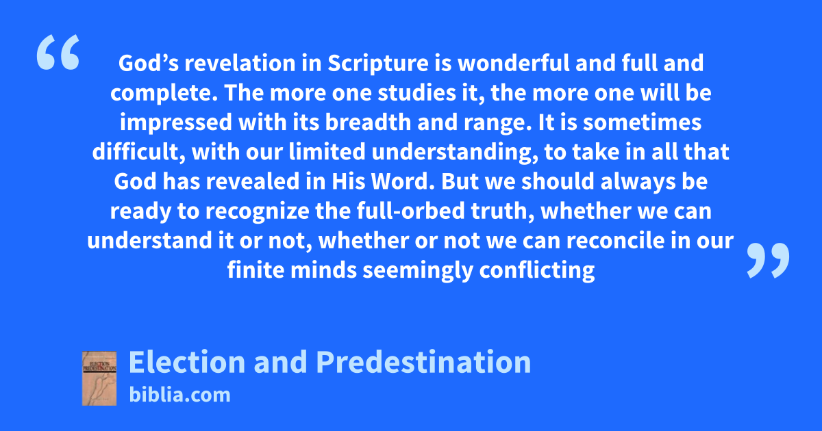 God’s revelation in Scripture is wonderful and full and complete. The more one studies it, the more one will be impressed with its breadth and range. It is sometimes difficult, with our limited understanding, to take in all that God has revealed in His Word. But we should always be ready to recognize the full-orbed truth, whether we can understand it or not, whether or not we can reconcile in our finite minds seemingly conflicting
