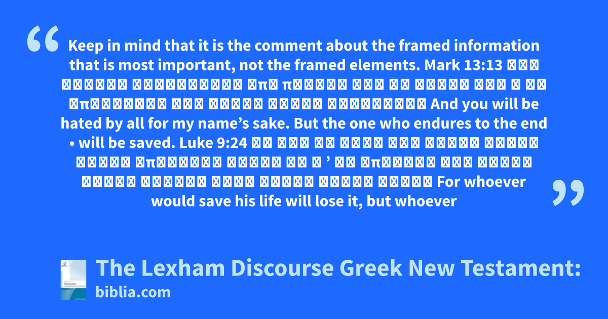 This resource introduces the concepts behind the annotations of The Lexham Discourse Greek New Testament. Each discourse device is discussed, with several examples, to show the exegetical significance of the device in question.