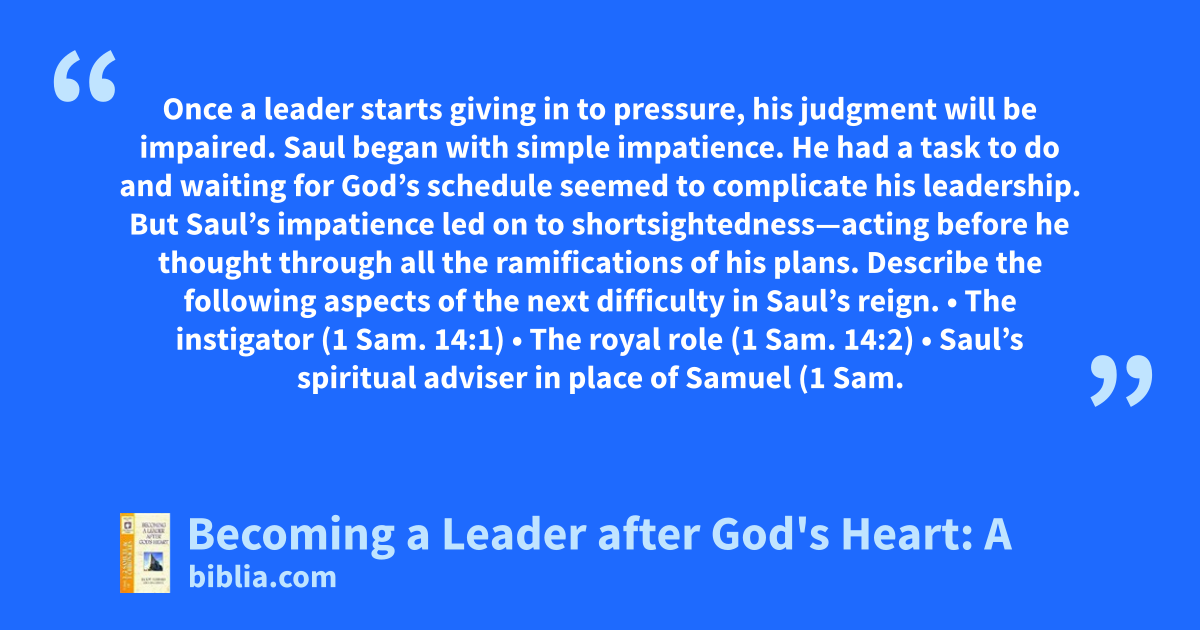 In this study you will meet three influential leaders with lessons for today. Learn from Samuel how to keep your heart tuned to God’s voice. Watch Saul and promise yourself that you will never try to make things happen without God and discover, with David, the spiritual riches of pursuing God with your whole heart.