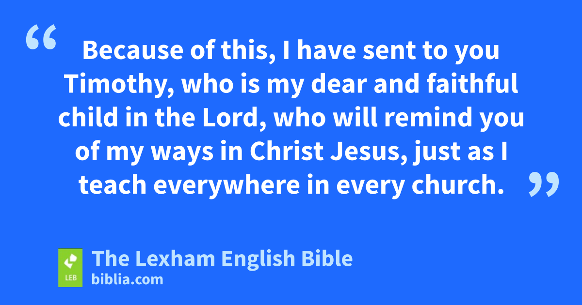 14 I am not writing these things to shame you, but admonishing you as my dear children. 15 For if you have ten thousand guardians in Christ, yet you do not have many fathers, for in Christ Jesus I fathered you through the gospel. 16 Therefore I exhort you, become imitators of me. 17 Because of this, I have sent to you Timothy, who is my dear and faithful child in the Lord, who will remind you of my ways in Christ Jesus, just as I teach everywhere in every church. 18 But some have become arrogant, as if I were not coming to you. 19 But I am coming to you soon, if the Lord wills, and I will know not the talk of the ones who have become arrogant, but the power. 20 For the kingdom of God is not with talk, but with power. 21 What do you want? Shall I come to you with a rod, or with love and a spirit of gentleness?