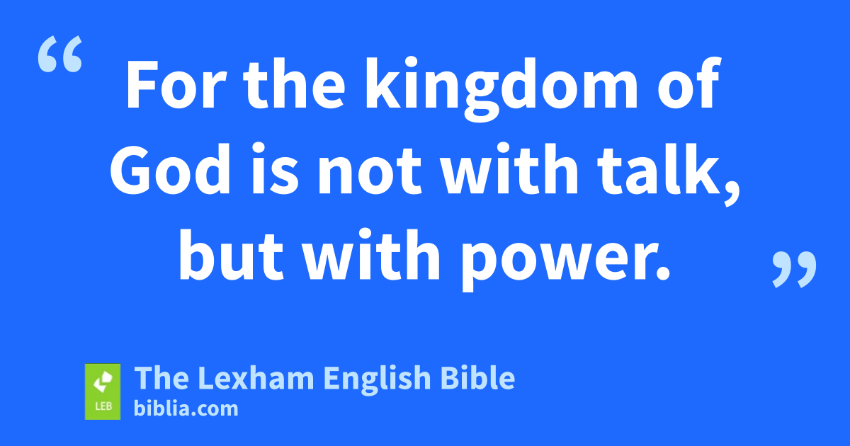 14 I am not writing these things to shame you, but admonishing you as my dear children. 15 For if you have ten thousand guardians in Christ, yet you do not have many fathers, for in Christ Jesus I fathered you through the gospel. 16 Therefore I exhort you, become imitators of me. 17 Because of this, I have sent to you Timothy, who is my dear and faithful child in the Lord, who will remind you of my ways in Christ Jesus, just as I teach everywhere in every church. 18 But some have become arrogant, as if I were not coming to you. 19 But I am coming to you soon, if the Lord wills, and I will know not the talk of the ones who have become arrogant, but the power. 20 For the kingdom of God is not with talk, but with power. 21 What do you want? Shall I come to you with a rod, or with love and a spirit of gentleness?