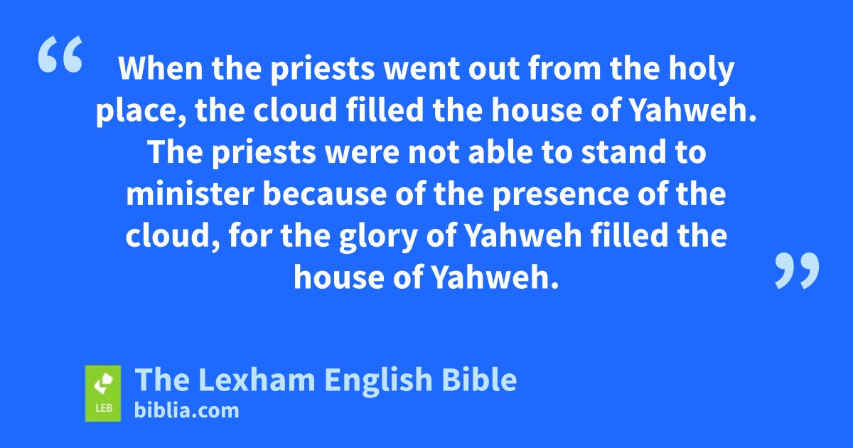 8 At that time, Solomon assembled the elders of Israel—all the heads of the tribes, the leaders of the ⌊families⌋a of the ⌊Israelites⌋b—before King Solomon in Jerusalem, in order to bring up the ark of the covenant of Yahweh from the city of David, that is, Zion. 2 All the men of Israel assembled before King Solomon at the festival in the month of Ethnaim, that is, the seventh month. 3 All the elders of Israel came, and the priests carried the ark. 4 So they brought up the ark of Yahweh and the tent of assemblyc and all of the holy vessels that were in the tent; the priests and the Levites brought them up. 5 King Solomon and all the assembly of Israel who were assembling with him in the presence of the ark were sacrificing sheep and oxen that could not be counted nor numbered because of abundance. 6 The priests brought the ark of the covenant of Yahweh to its place in the inner sanctuary of the house, to the ⌊most holy place⌋,d under the wings of the cherubim, 7 for the cherubim were spreading their wings over the place of the ark. The cherubim overshadowed the ark and its poles from above. 8 The poles were long, and the ends of the poles could be seen from the holy place ⌊in front of⌋e the inner sanctuary, but they could not be seen from the outside, and they are there until this day. 9 There was not anything in the ark ⌊except⌋f the two tablets of stone which Moses had placed there at Horeb, where Yahweh ⌊made⌋g a covenant with the ⌊Israelites⌋h after they went out from the land of Egypt. 10 When the priests went out from the holy place, the cloud filled the house of Yahweh. 11 The priests were not able to stand to minister ⌊because of the presence of⌋i the cloud, for the glory of Yahweh filled the house of Yahweh.