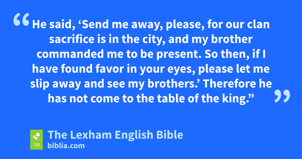 24 So David hid himself in the field. ⌊When the new moon came⌋,d ⌊the king was seated at the feast⌋.e 25 The king sat at his seat ⌊as before⌋,f the seat by the wall, and Jonathan got up, and Abner sat beside Saul, but David’s place was empty. 26 But Saul said nothing on that day, for he thought, “⌊Something happened to him⌋.g He is not ceremonially clean; surely he is not clean.” 27 ⌊And then⌋h on the next day, the second day of the new moon, that David’s place was empty. So Saul asked Jonathan his son, “Why did the son of Jesse not come either yesterday or today to the feast?” 28 Jonathan answered Saul, “David earnestly asked permission from me to go up to Bethlehem. 29 He said, ‘Send me away, please, for our clan sacrifice is in the city, and my brother commandedi me to be present. So then, if I have found favor in your eyes, please let me slip away and see my brothers.’ Therefore he has not come to the table of the king.” 30 Then ⌊Saul became angry⌋j at Jonathan and said to him, “You son of a perverse, rebellious woman!k Do I not know that you have chosen the son of Jesse to your shame and to the shame of your mother’s nakedness? 31 For ⌊as long as⌋l the son of Jesse is alive on the earth, you and your kingdom will not be established! So then, send and bring him to me, for ⌊he will surely die⌋!”m 32 But Jonathan answered his father Saul and said to him, “Why should he be put to death? What has he done?” 33 Then Saul hurled hisn spear at him to kill him. So Jonathan knew ⌊that his father had decided⌋o to kill David.