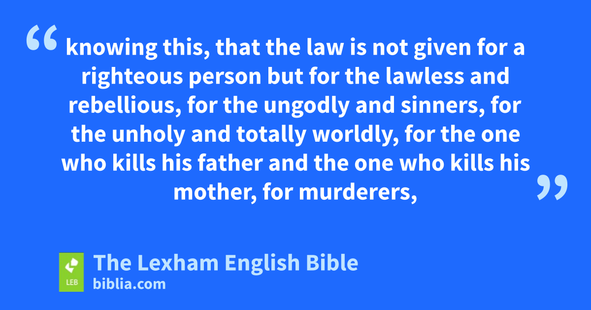 8 But we know that the law is good, if anyone makes use of it lawfully, 9 knowing this, that the law is not given for a righteous person but for the lawless and rebellious, for the ungodly and sinners, for the unholy and totally worldly, for the one who kills his father and the one who kills his mother, for murderers, 10 sexually immoral people, homosexuals, kidnappers, liars, perjurers, and ⌊whatever⌋a else is opposed to sound teaching, 11 according to the glorious gospel of the blessed God that I was entrusted with.