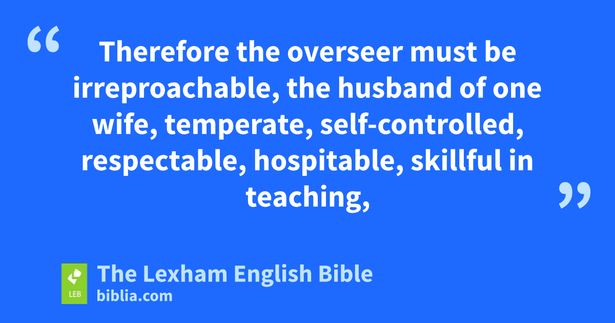 3 The saying is trustworthy: if anyone aspires to supervision, he desires a good work. 2 Therefore the overseer must be irreproachable, the husband of one wife, temperate, self-controlled, respectable, hospitable, skillful in teaching, 3 not addicted to wine, not a violent person, but gentle, peaceable, not loving money, 4 managing his own household well, having children in submission with all dignity 5 (but if someone does not know how to manage his own household, how will he take care of the church of God?), 6 not newly converted, lest he become conceited and fall into the condemnation of the devil. 7 But he must also have a good testimony from those outside, in order that he may not fall into disgrace and the trap of the devil.