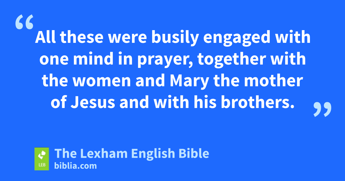 12 Then they returned to Jerusalem from the mountain that is called Olive Grovef which is near Jerusalem, ⌊a Sabbath day’s journey away⌋.g 13 And when they had entered, they went up to the upstairs room where they were staying—Peter and John and James and Andrew, Philip and Thomas, Bartholomew and Matthew, James son of Alphaeus and Simon the Zealot and Judas son of James. 14 All these were busily engaged with one mind in prayer, together with the women and Mary the mother of Jesus and withh his brothers.