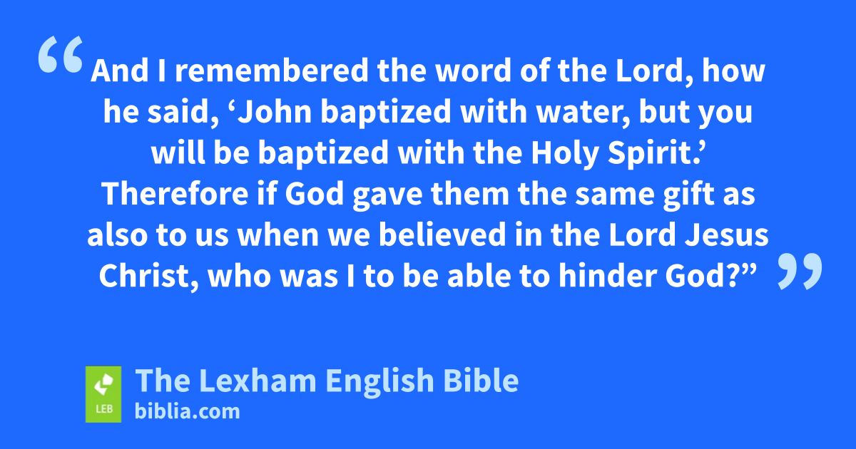 11 Now the apostles and the brothers who were throughout Judea heard that the Gentiles also had accepted the worda of God. 2 So when Peter went up to Jerusalem, those of the circumcision took issue with him, 3 saying, “You went to men ⌊who were uncircumcised⌋b and ate with them!” 4 But Peter began and* explained it* to them in an orderly sequence, saying, 5 “I was in the city of Joppa praying, and in a trance I saw a vision—an object something like a large sheet coming down, being let down from heaven by its four corners, and it came to me. 6 As I* looked intently into it, I was considering it,* and I saw the four-footed animals of the earth and the wild animals and the reptiles and the birds of the sky. 7 And I also heard a voice saying to me, ‘Get up, Peter, slaughter and eat!’ 8 But I said, ‘Certainly not, Lord! For nothing common or unclean has ever entered into my mouth!’ 9 But the voice replied from heaven for the second time, ‘The things which God has made clean, you must not consider unclean!’ 10 And this happened three times, and everything was pulled up into heaven again. 11 And behold, at once three men who had been sent to me from Caesarea approached the house in which we were staying.* 12 And the Spirit told me to accompany them, not hesitating at all. So these six brothers also went with me, and we entered into the man’s house. 13 And he reported to us how he had seen the angel standing in his house and saying, ‘Send to Joppa and summon Simon, who is also called Peter, 14 who will speak words to you by which you will be saved, you and all your household.’ 15 And as I was beginning to speak, the Holy Spirit fell on them, just as also on us at the beginning. 16 And I remembered the word of the Lord, how he said, ‘John baptized with water, but you will be baptized with the Holy Spirit.’c 17 Therefore if God gave them the same gift as also to us when we* believed in the Lord Jesus Christ, who was I to be able to hinder God?” 18 And when they* heard these things, they became silent* and praised God, saying, “Then God has granted the repentance leading to life to the Gentiles also!”