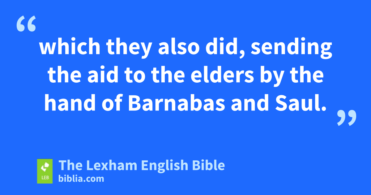 27 Now in those days prophets came down from Jerusalem to Antioch. 28 And one of them ⌊named⌋h Agabus stood up and* indicated by the Spirit that a great famine was about to come over the whole inhabited earth (which took place in the time of Claudius). 29 So from the disciples, ⌊according to their ability to give⌋,i each one of them determined to send financial aid* for support to the brothers who lived in Judea, 30 which they also did, sending the aid* to the elders by the hand of Barnabas and Saul.