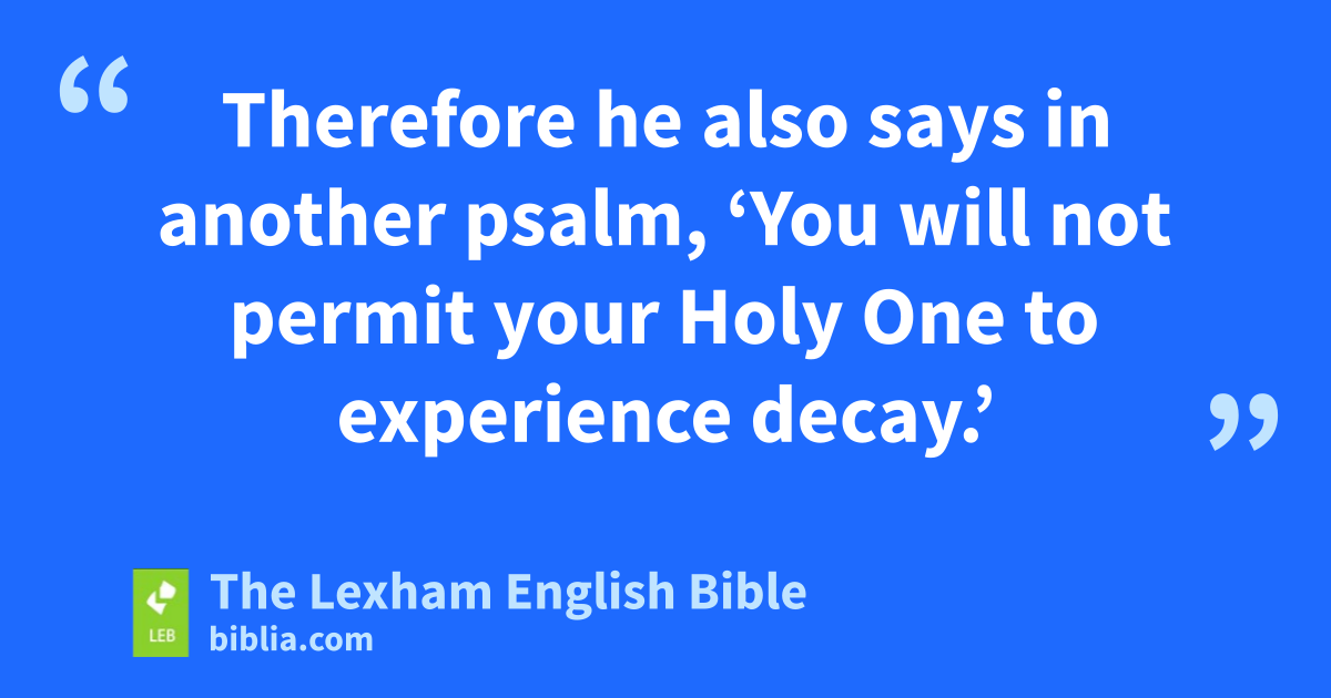 34 But that he has raised him from the dead, no more going to return to decay, he has spoken in this way: ‘I will give you the reliable divine decrees of David.’h 35 Therefore he also says in another psalm,*