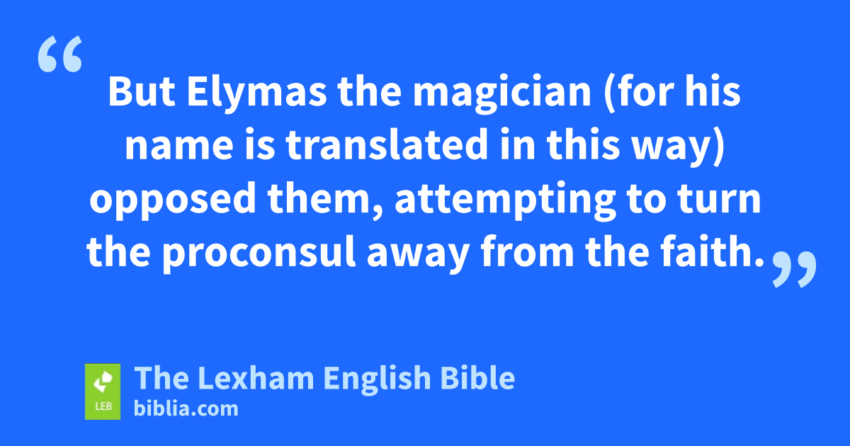 4 Therefore, sent out by the Holy Spirit, they came down to Seleucia, and from there they sailed away to Cyprus. 5 And when they* came to Salamis, they began to proclaim the word of God in the synagogues of the Jews. And they also had John as assistant. 6 And when they* had crossed over the whole island as far as Paphos, they found a certain man, a magician, a Jewish false prophet whose name was Bar-Jesus,7 who was with the proconsul Sergius Paulus, an intelligent man. This man summoned Barnabas and Saul and* wished to hear the word of God. 8 But Elymas the magician (for his name is translated in this way) opposed them, attempting to turn the proconsul away from the faith. 9 But Saul (also called Paul), filled with the Holy Spirit, looked intently at him 10 and* said, “O you who are full of all deceit and of all unscrupulousness, you son of the devil, you enemy of all righteousness! Will you not stop making crooked the straight paths of the Lord! 11 And now behold, the hand of the Lord is against you, and you will be blind, not seeing the sun ⌊for a while⌋.”a And immediately mist and darkness fell over him, and he was going around looking for people* to lead him* by the hand. 12 Then when* the proconsul saw what had happened, he believed, because he* was astounded at the teaching about* the Lord.