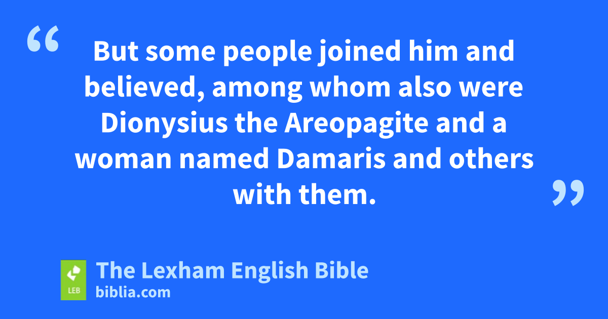 22 So Paul stood there in the middle of the Areopagus and* said, “Men of Athens, I see you are very religious ⌊in every respect⌋.h 23 For as I* was passing through and observing carefully your objects of worship, I even found an altar on which was inscribed, ‘To an unknown God.’ Therefore what you worship without knowing it,* this I proclaim to you—24 the God who made the world and all the things in it. This one, being Lord of heaven and earth, does not live in temples made by human hands, 25 nor is he served by human hands as if he* needed anything, because* he himself gives to everyone life and breath and everything. 26 And he made from one man every nation of humanity to live on all the face of the earth, determining their fixed times and the fixed boundaries of their habitation, 27 to search for God, if perhaps indeed they might feel around for him and find him.* And indeed he is not far away from each one of us, 28 for in him we live and move and exist,i as even some of ⌊your own⌋j poets have said: ‘For we also are ⌊his⌋k offspring.’l 29 Therefore, because we* are offspring of God, we ought not to think the divine being is like gold or silver or stone, an image formed by human skill and thought. 30 Therefore although* God has overlooked the times of ignorance, he now commands all people everywhere to repent, 31 because he has set a day on which he is going to judge the world in righteousness by the man who he has appointed, having provided proof to everyone by* raising him from the dead.” 32 Now when they* heard about the resurrection of the dead, some scoffed, but others said, “We will hear you about this again also.” 33 So Paul went out from the midst of them. 34 But some people* joined him and* believed, among whom also were Dionysius the Areopagite and a woman ⌊named⌋m Damaris and others with them.