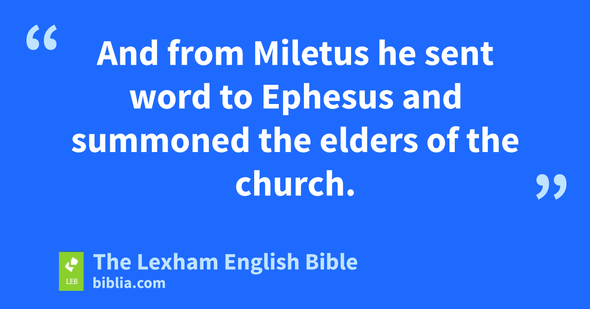 17 And from Miletus he sent word* to Ephesus and* summoned the elders of the church. 18 And when they came to him, he said to them, “You know from the first day on which I set foot in Asiae how I was the whole time with you—19 serving the Lord with all humility and with tears, and with the trials that happened to me through the plots of the Jews—20 how I did not shrink from proclaiming to you anything that would be profitable, and from teaching you in public and from house to house, 21 testifying both to Jews and to Greeks with respect to repentance toward God and faith in our Lord Jesus.
