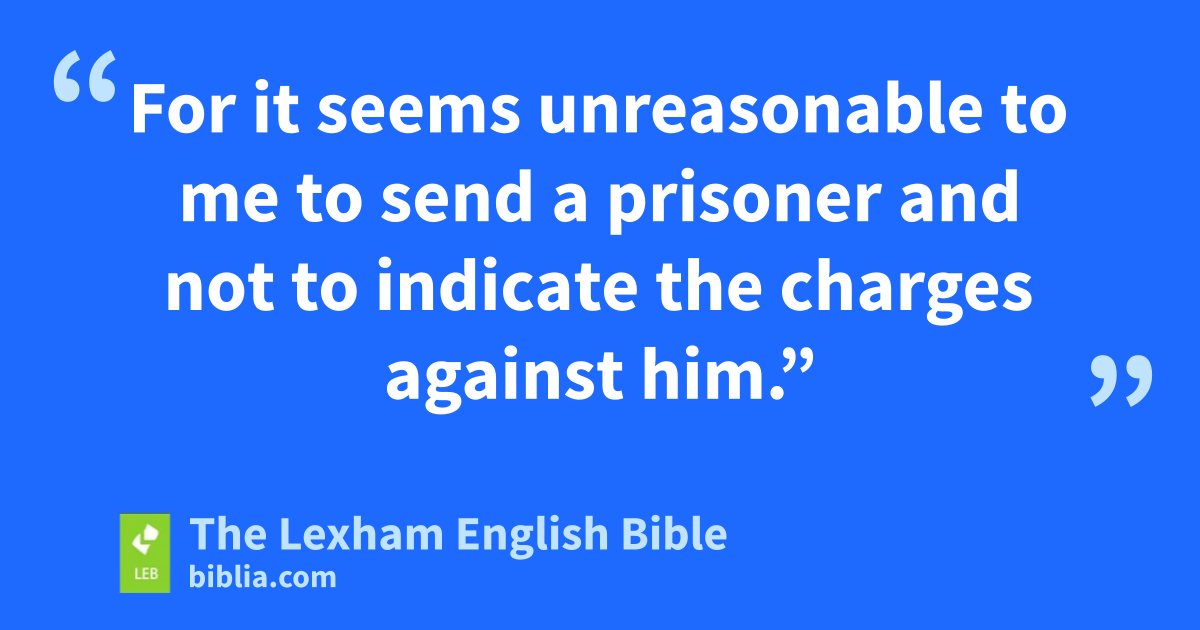 23 So on the next day, Agrippa and Bernice came with great pageantry and entered into the audience hall, along with military tribunes and the most prominent men of the city. And when* Festus gave the order, Paul was brought in. 24 And Festus said, “King Agrippa and all who are present with us, you see this man about whom the whole population of the Jews appealed to me, both in Jerusalem and here, shouting that he must not live any longer. 25 But I understood that he had done nothing deserving death himself, and when* this man appealed to His Majesty the Emperor, I decided to send him.* 26 I do not have anything definite to write to my* lord about ⌊him⌋.d Therefore I have brought him before you all*—and especially before you, King Agrippa—so that after* this preliminary hearing has taken place, I may have something to write. 27 For it seems unreasonable to me to send a prisoner and not to indicate the charges against him.”