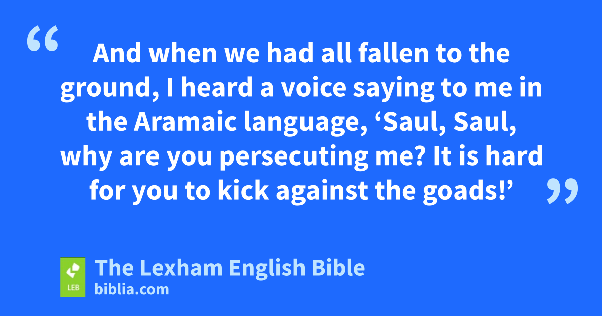 4 “Now all the Jews know my manner of life from my youth, that had taken place from the beginning among my own peoplea and in Jerusalem, 5 having known me for a long time, if they are willing to testify, that in accordance with the strictest party of our religion I lived as a Pharisee. 6 And now I stand here on trial on the basis of hope in the promise made by God to our fathers, 7 to which our twelve tribes hope to attain as they earnestly serve him* night and day. Concerning this hope I am being accused by the Jews, O king! 8 Why is it thought incredible by you people* that God raises the dead? 9 Indeed, I myself thought it was necessary to do many things opposed to the name of Jesus the Nazarene, 10 which I also did in Jerusalem, and not only did I lock up many of the saints in prison, having received authority from the chief priests, but also when* they were being executed, I cast my voteb against them.* 11 And throughout all the synagogues I punished them often and* tried to force* them* to blaspheme, and because I* was enraged at them beyond measure, I was pursuing them* even as far as to foreign cities. 12 In ⌊this activity⌋c I was traveling to Damascus with the authority and full power of the chief priests. 13 In the middle of the day along the road, O king, I saw a light from heaven, more than the brightness of the sun, shining around me and those who were traveling with me. 14 And when* we had all fallen to the ground, I heard a voice saying to me in the Aramaic language, ‘Saul, Saul, why are you persecuting me? It is hard for you to kick against the goads!’ 15 So I said, ‘Who are you, Lord?’ And the Lord said, ‘I am Jesus whom you are persecuting. 16 But get up and stand on your feet, because for this reason I have appeared to you, to appoint you a servant and witness both to the things in which you saw me and to the things in which I will appear to you, 17 rescuing you from the people and from the Gentiles to whom I am sending you, 18 to open their eyes so that they may turn from darkness to light and from the power of Satan to God, so that they may receive forgiveness of sins and a share among those who are sanctified by faith in me.’