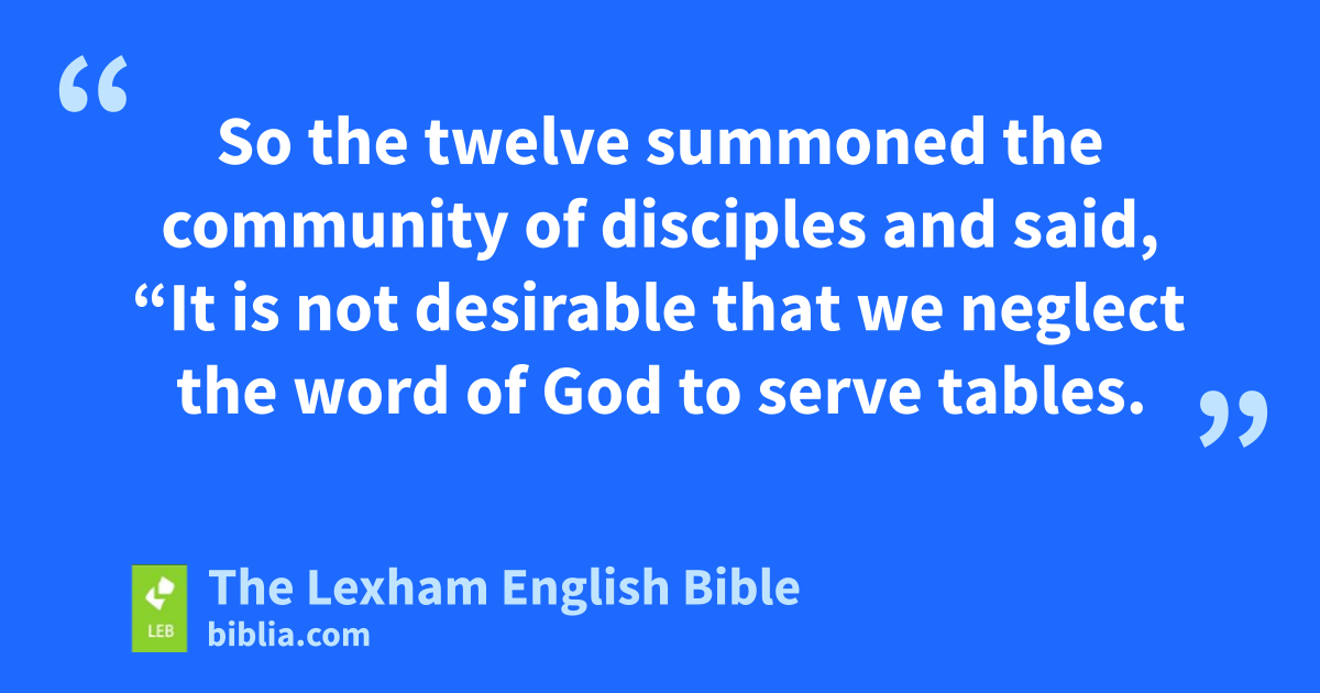 6 Now in these days, as* the disciples were increasing in number,* a complaint arose by the ⌊Greek-speaking Jews⌋a against the ⌊Hebraic Jews⌋b becausec their widows were being overlooked in the daily distribution of food.* 2 So the twelve summoned the community of disciples and* said, “It is not desirable that we neglect the word of God to serve tables. 3 So, brothers, select from among you seven men ⌊of good reputation⌋,d full of the Spirit and wisdom, whom we will put in charge of this need. 4 But we will devote ourselves to prayer and to the ministry of the word.” 5 And the statement pleased the whole group, and they chose Stephen (a man full of faith and of the Holy Spirit), and Philip, and Prochorus, and Nicanor, and Timon, and Parmenas, and Nicolaus (a convert from Antioch), 6 whom they stood before the apostles. And they prayed and* placed their* hands on them.
