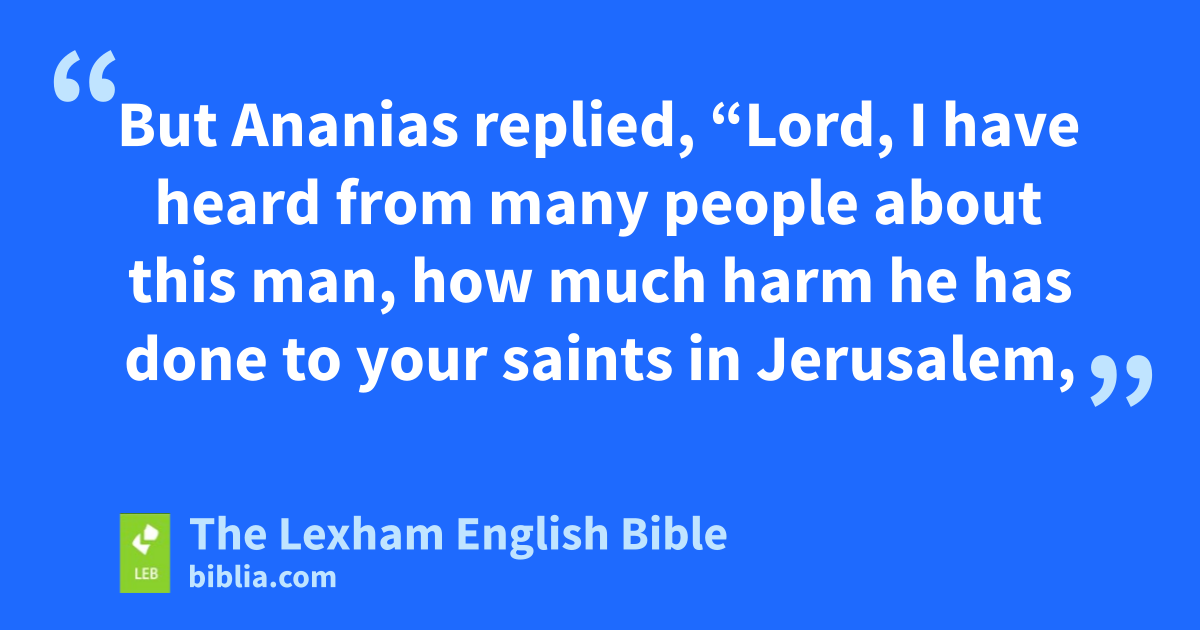 10 Now there was a certain disciple in Damascus ⌊named⌋d Ananias, and the Lord said to him in a vision, “Ananias!” And he said, “Behold, here I am, Lord!” 11 And the Lord said to him, “Get up, go to the street called ‘Straight’ and in the house of Judas look for ⌊a man named Saul from Tarsus⌋.e For behold, he is praying, 12 and he has seen in a vision a man ⌊named⌋f Ananias coming in and placing handsg on him so that he may regain his sight.” 13 But Ananias replied, “Lord, I have heard from many people about this man, how much harm he has done to your saints in Jerusalem, 14 and here he has authority from the chief priests to tie uph all who call upon your name!” 15 But the Lord said to him, “Go, because this man is my chosen instrument to carry my name before Gentilesi and kings and the sons of Israel. 16 For I will show him how much he must suffer for the sake of my name.” 17 So Ananias departed and entered into the house, and placing his* hands on him, he said, “Brother Saul, the Lord Jesus, who appeared to you on the road by which you came, has sent me so that you may regain your sight and be filled with the Holy Spirit.” 18 And immediately something like scales fell from his eyes and he regained his sight and got up and* was baptized, 19 and after* taking food, he regained his strength. And he was with the disciples in Damascus several days.
