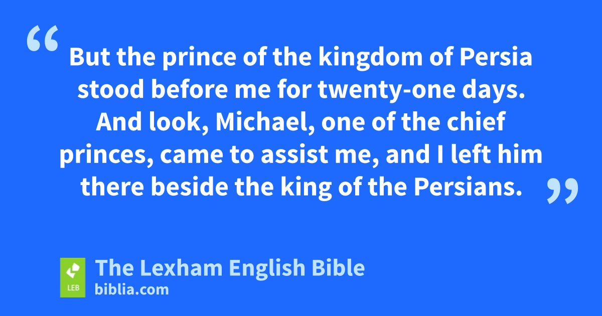 18 And ⌊he again touched⌋l me, ⌊the one in the form of a human⌋,m and he strengthened me. 19 And he said, “You must not fear, O beloved man. ⌊Peace be to you⌋;n be strong and be courageous!” And ⌊when he spoke⌋o with me, I was strengthened and I said, “Let my lord speak, for you have strengthened me.” 20 Then he asked, “Do you know why I have come to you? And now I return to fight against the prince of Persia and I myselfp am going, and look,q the prince of Javanr will come. 21 However, I will tell you ⌊what is inscribed⌋s in the book of truth, and there is not one who contends with me against these beings ⌊except⌋t Michael, your prince.”