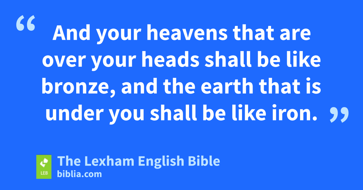 20 “Yahweh will send upon youd the curse,e the panic,f and the threatg ⌊in everything that you undertake⌋,h ⌊until you are destroyed and until you perish quickly⌋i ⌊because of⌋j the evil of your deeds in thatk you have forsaken me. 21 Yahweh will cause the plague to cling to you ⌊until it consumes you⌋l from the land that you are going to,m to take possession of it. 22 Yahweh will afflict you with the wasting diseases and with the fever and with the inflammation and with the scorching heat and with the swordn and with the blight and with the mildew, and they shall pursue you ⌊until you perish⌋.o 23 And your heavens that are over your heads shall be like bronze, and the earth that is under you shall be like iron. 24 Yahweh will change the rain of your land to fine dust and to sand; from the heaven it shall come down upon you ⌊until you are destroyed⌋.p