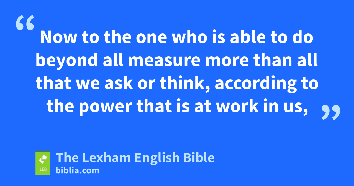 20 Now to the one who is able to do beyond all measure more than all that we ask or think, according to the power that is at work in us, 21 to him be the glory in the church and in Christ Jesus to all generations forever and ever. Amen.