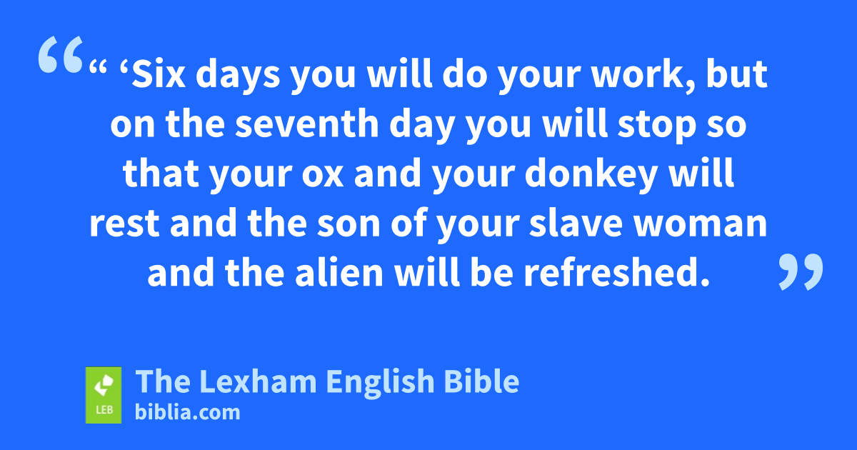 12 “ ‘Six days you will do your work, but on the seventh day you will stop so that your ox and your donkey will rest and the son of your slave woman and the alien will be refreshed.