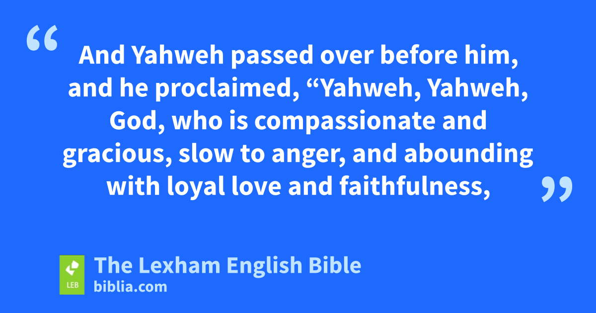 4 And Moses cut two stone tablets like the first ones, and he started early in the morning, and he went up to Mount Sinai, as Yahweh had commanded him, and he took in his hand the two stone tablets. 5 And Yahweh descended in the cloud, and he stood with him there, and he proclaimed the name of Yahweh. 6 And Yahweh passed over before him, and he proclaimed, “Yahweh, Yahweh, God, who is compassionate and gracious, ⌊slow to anger⌋,b and abounding withc loyal love and faithfulness, 7 keeping loyal love to the thousands, forgiving iniquity and transgression and sin, and he does not leave utterly unpunished, punishing the guilt of fathers on sons and on sons of sons on third and fourth generations.”