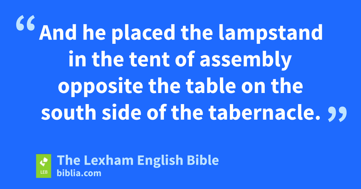 22 And he put the table in the tent of assembly on the north side of the tabernacle outside the curtain. 23 And he arranged on it an arrangement of bread before Yahweh, as Yahweh had commanded Moses. 24 And he placed the lampstand in the tent of assembly opposite the table on the south side of the tabernacle. 25 And he set up the lamps before Yahweh, as Yahweh had commanded Moses. 26 And he placed the gold altar in the tent of assembly before the curtain. 27 And he turned fragrant incense into smoke on it, as Yahweh had commanded Moses.
