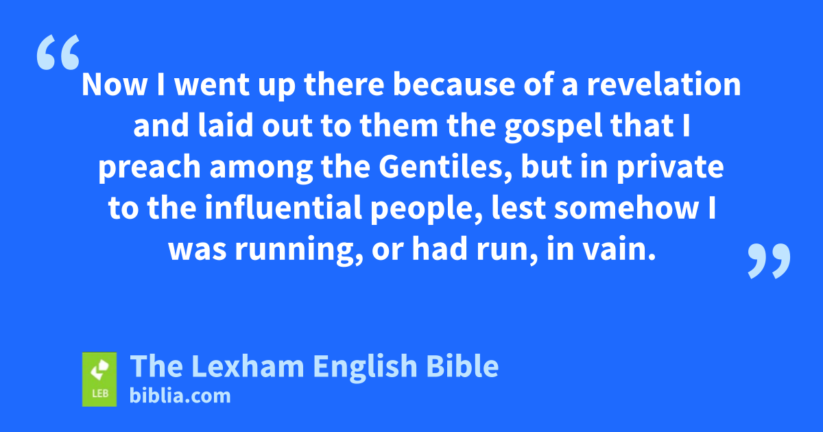 2 Then after fourteen years I went up again to Jerusalem with Barnabas, taking along Titus also. 2 Now I went up there because of a revelation and laid out to them the gospel that I preach among the Gentiles, but in private to the influential people, lest somehow I was running, or had run, in vain. 3 But not even Titus who was with me, although* he was a Greek, was compelled to be circumcised. 4 Now this was because of the false brothers secretly brought in, who slipped in to spy out our freedom that we have in Christ Jesus, in order that they might enslave us, 5 to whom not even for an hour did we yield in subjection, in order that the truth of the gospel might remain continually with you. 6 But from those ⌊who were influential⌋a (whatever they were, it makes no difference to me, ⌊God does not show partiality⌋b)—for those who were influential added nothing to me. 7 But these, when they* saw that I had been entrusted with the gospel to the uncircumcision, just as Peter to the circumcision 8 (for the one who was at work through Peter for his apostleship to the circumcision was at work also through me for the Gentiles), 9 and when James and Cephas and John—those thought to be pillars—acknowledged the grace given to me, they gave to me and Barnabas the right hand of fellowship, in order that we should go to the Gentiles and they to the circumcision. 10 They asked only that we should remember the poor, the very thing I was also eager to do.