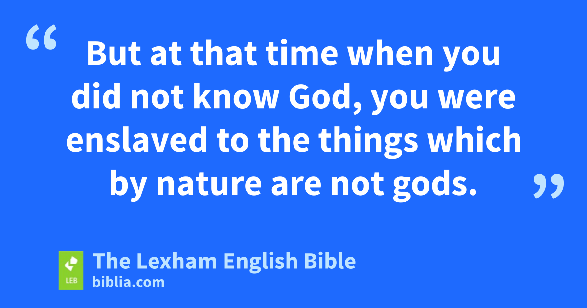 8 But at that time when you* did not know God, you were enslaved to the things which by nature are not gods. 9 But now, because you have come to know God, or rather have come to be known by God, how can you turn back again to the weak and miserable elemental spirits? Do you want to be enslaved to themb all over again? 10 You carefully observe days and months and seasons and years. 11 I am afraid for you, lest perhaps I have labored for you in vain! 12 I ask you, brothers, become like me, because I also have become like you. You have done me no wrong!