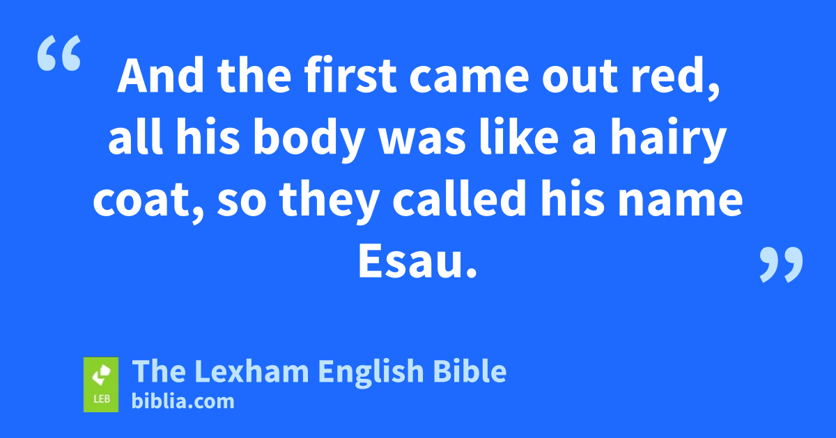 19 Now these are the generationsg of Isaac, the son of Abraham. Abraham fathered Isaac, 20 And Isaac was ⌊forty years old⌋h when he took Rebekah, the daughter of Bethuel the Aramean of Paddan-Aram, the sister of Laban the Aramean, as his wife. 21 And Isaac prayed to Yahweh on behalf of his wife, for she was barren. And Yahweh responded to his prayer, and Rebekah his wife conceived. 22 And the children in her womb jostled each other, and she said, “⌊If it is going to be like this, why be pregnant⌋?”i And she went to inquire of Yahweh. 23 And Yahweh said to her, “Two nations are in your womb, and two peoples ⌊from birth⌋j shall be divided. And ⌊one people shall be stronger than the other⌋.k And the elder shall serve the younger.” 24 And when her days to give birth were completed,l then—behold—twins were in her womb. 25 And the first came out red, all ⌊his body⌋m was like a hairy coat, so they called his name Esau. 26 And afterward his brother came out, and his hand grasped the heel of Esau, so his name was called Jacob. And Isaac ⌊was sixty years old⌋n at their birth. 27 And the boys grew up. And Esau was a skilledo hunter, a man of the field, but Jacob was a peaceful man, living in tents. 28 And Isaac loved Esau because ⌊he could eat of his game⌋,p but Rebekah loved Jacob. 29 Onceq Jacob cooked a thick stew, and Esau came in from the field, and he was exhausted. 30 And Esau said to Jacob, “Give me ⌊some of that red stuff⌋r to gulp down, for I am exhausted!” (Therefore his name was called Edom). 31 Then Jacob said, “Sell me your birthright ⌊first⌋.”s 32 And Esau said, “Look, I am going to die; now what is this birthright to me?” 33 Then Jacob said, “Swear to me ⌊first⌋.”t And he swore to him, and sold his birthright to Jacob. 34 Then Jacob gave Esau bread, and thick lentil stew, and he ate and drank. Then he got up and went away. So Esau despised his birthright.