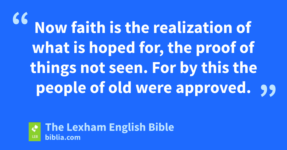 11 Now faith is the realization of what is hoped for, the proof of things not seen. 2 For by this the people of old were approved. 3 By faith we understand the worlds were created by the word of God, in order that what is seen did not come into existence from what is visible.