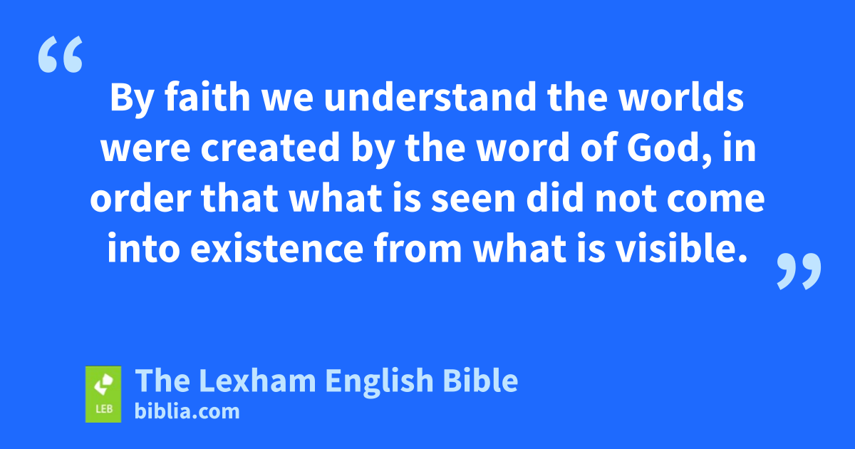 11 Now faith is the realization of what is hoped for, the proof of things not seen. 2 For by this the people of old were approved. 3 By faith we understand the worlds were created by the word of God, in order that what is seen did not come into existence from what is visible.