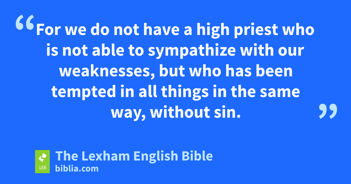 14 Therefore, because we have a great high priest who has gone through the heavens, Jesus the Son of God, let us hold fast to our confession. 15 For we do not have a high priest who is not able to sympathize with our weaknesses, but who has been tempted in all things in the same way, without sin. 16 Therefore let us approach with confidence to the throne of grace, in order that we may receive mercy and find grace to help in time of need.