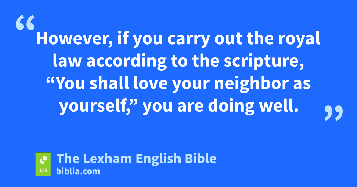 8 However, if you carry out the royal law according to the scripture, “You shall love your neighbor as yourself,”e you are doing well. 9 But if you show partiality, you commit sin, and thus* are convicted by the law as transgressors. 10 For whoever keeps the whole law but stumbles in one point only has become guilty of all of it. 11 For the one who said “Do not commit adultery”f also said “Do not murder.”g Now if you do not commit adultery but you do murder, you have become a transgressor of the law. 12 Thus speak and thus act as those who are going to be judged by the law of liberty. 13 For judgment is merciless to the one who has not practiced mercy. Mercy triumphs over judgment.