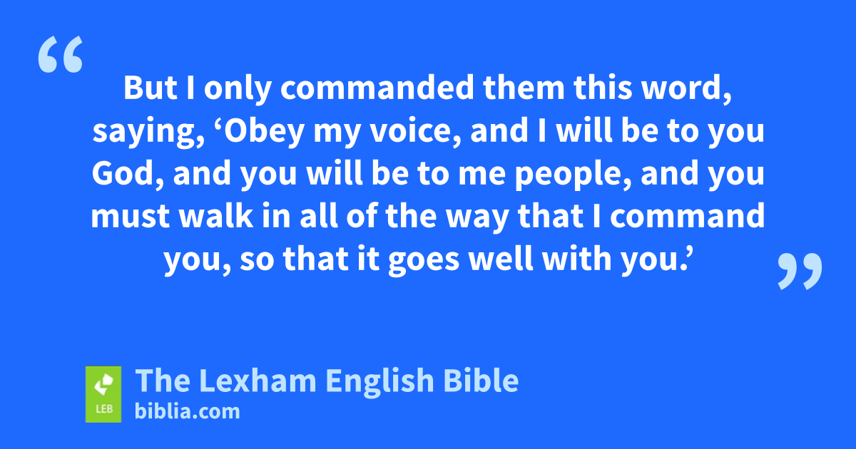 21 Thus says Yahweh of hosts, the God of Israel, “Add your burnt offerings to your sacrifices, and eat the flesh. 22 For I did not speak with your ancestors,y nor did I command them in the day of bringing them out from the land of Egypt, concerning the matter of burnt offering and sacrifice. 23 But I only commanded them this word, ⌊saying⌋,z ‘Obey my voice, and I will be to you God, and you will be to me people, and you must walk in all of the way that I command you, so that it goes well with you.’ 24 Yet they did not obey, and they did not incline their ear, but they walked in their own plans, in the stubbornness of their evil heart, and ⌊they became worse instead of better⌋.a 25 From the day that your ancestorsb came out from the land of Egypt until this day I have sent to you all my servants the prophets, day after day, ⌊sending again and again⌋.c 26 Yet they have not listened to me and they have not inclined their ear, but they have hardened their neck, they did more evil than their ancestors.d 27 So you shall speak to them all these words, but they will not listen to you, and you shall call to them, but they will not answer you.