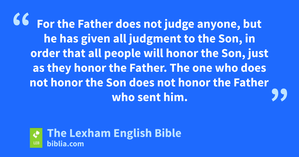 19 So Jesus answered and said to them, “Truly, truly I say to you, the Son can do nothing from himself except what he sees the Father doing. For whatever that one does, these things also the Son does likewise. 20 For the Father loves the Son and shows him everything that he himself is doing. And greater works than these he will show him, so that you will be astonished. 21 For just as the Father raises the dead and makes them* alive, thus also the Son makes alive whomever he wishes. 22 For the Father does not judge anyone, but he has given all judgment to the Son, 23 in order that all people* will honor the Son, just as they honor the Father. The one who does not honor the Son does not honor the Father who sent him. 24 Truly, truly I say to you that the one who hears my word and who believes the one who sent me has eternal life, and does not come into judgment, but has passed from death into life.