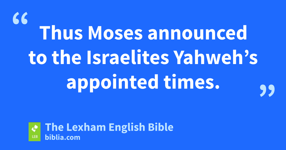 23 Thena Yahweh spoke to Moses, saying, 2 “Speak to the ⌊Israelites⌋,b and say to them, ‘The festivals of Yahweh that you shall proclaim are holy assemblies; these are my appointed times.